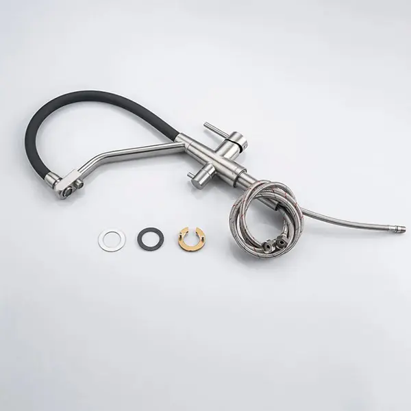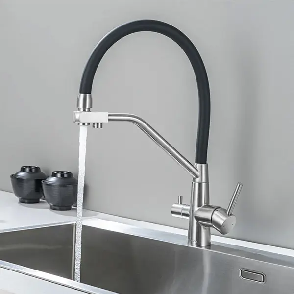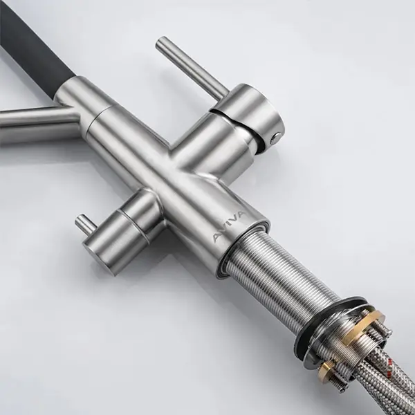 Смеситель кухонный Avivacom с гибким изливом и краном для питьевой воды, сатин/черный.
