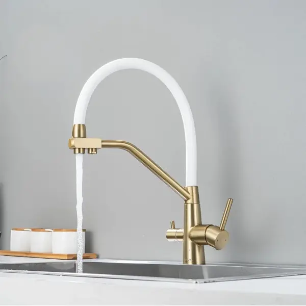 Смеситель кухонный Aviva с гибким изливом и краном для питьевой воды, сатин/черный.
