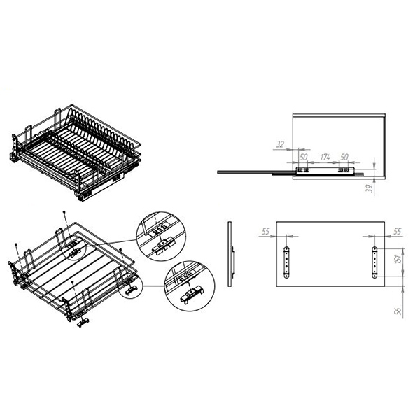 Сушка для посуды UMM, в модуль 500мм, с доводчиком, графит