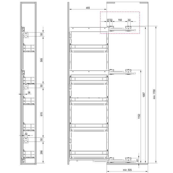 Колонна выдвижная Maxima Classic Cargo Maxi в базу 150 мм, левая