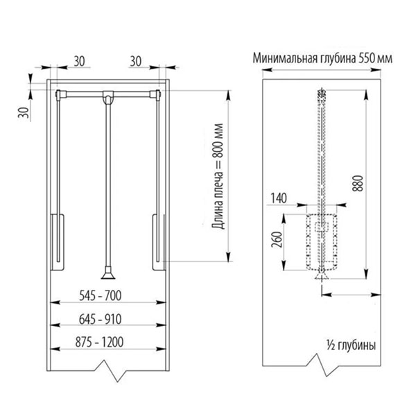 Пантограф для шкафа (лифт мебельный) GTV 545-700 мм, графит