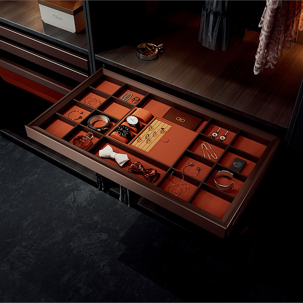 Премиальная полка из искусственной кожи с доводчиком и отдельным отсеком для украшений. Позволяет удобно хранить часы, ремни, бижутерию, кольца, цепочки и другие аксессуары. Отличается долговечностью, аккуратным дизайном и легко вписывается в любой интерьер, добавляя порядок и стиль в ваше пространство.
