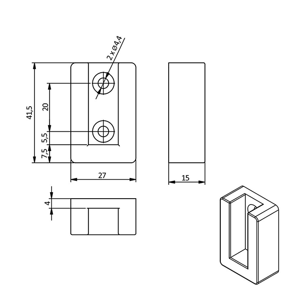 Штангодержатель прямоугольной трубы с заглушкой, белый