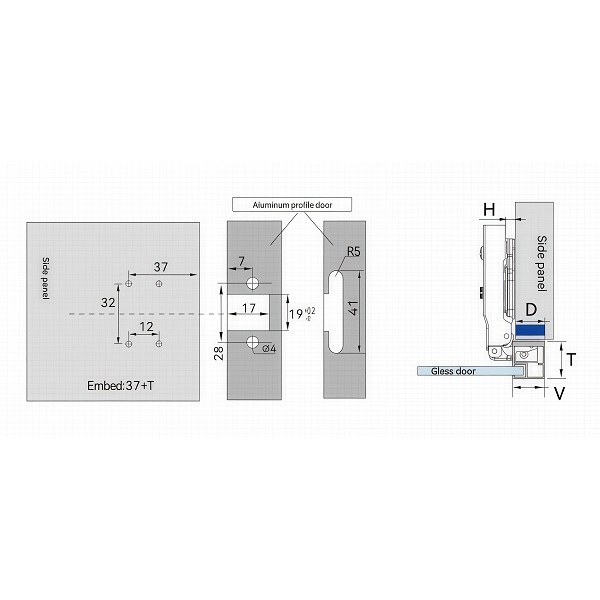 Петля Samsung Irex накладная 110°для AL-профиля 25мм, c доводчиком, черный, c МП