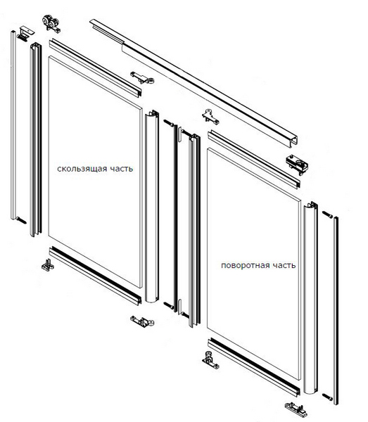 В состав комплекта профиля Раумплюс S751 для складной двери (1 дверь 2 створки) входит: