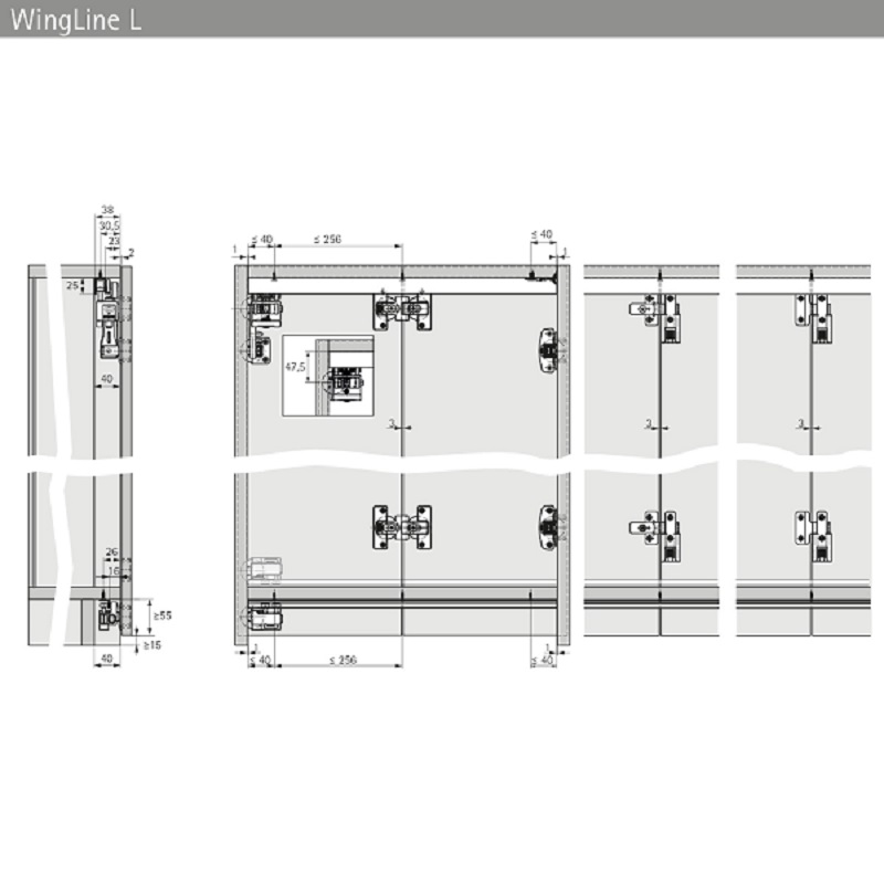 Комплект фурнитуры WingLine L, Heavy, самозакрывание, антрацит, L