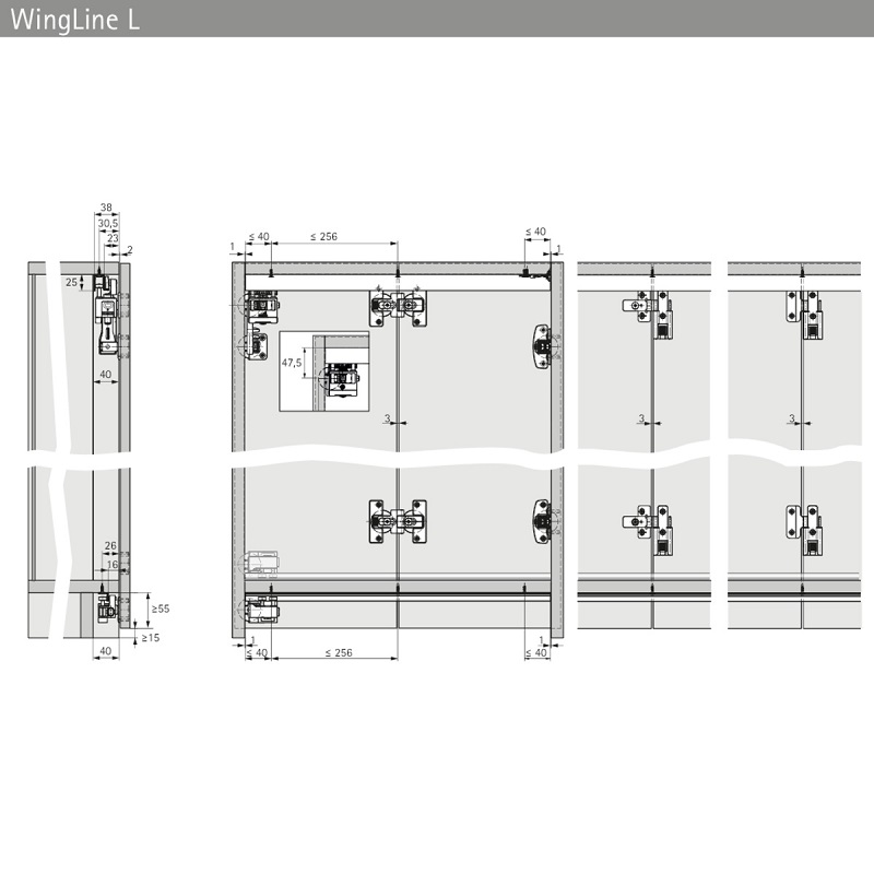 Комплект фурнитуры WingLine L, Heavy, самозакрывание, серый, L