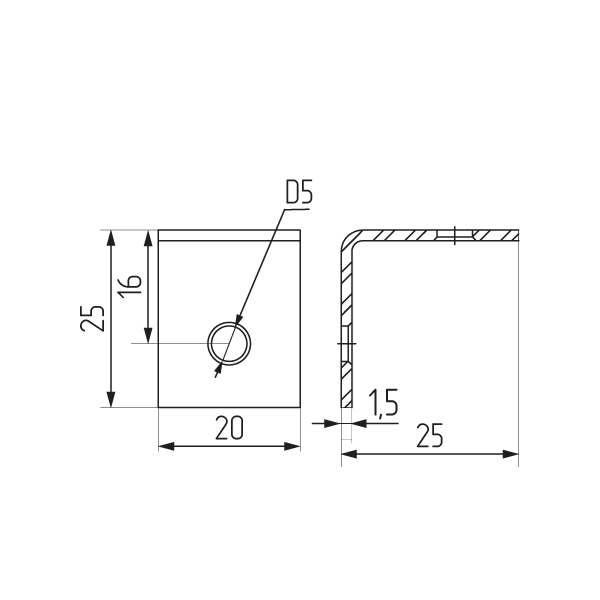 Уголок мебельный 25х25х20 мм
