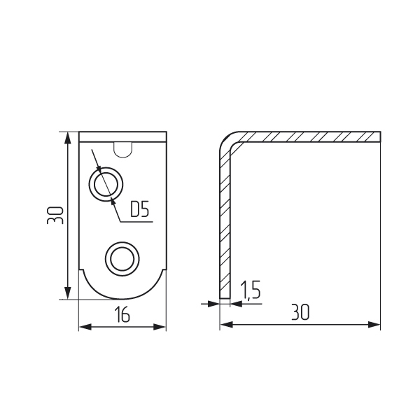 Уголок мебельный с ребром жесткости 30х30х16х1,5 мм