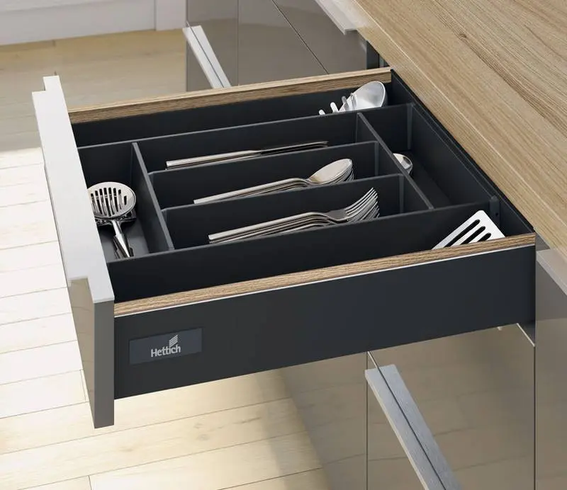 Без кухонных ящиков – никуда! Разнообразие цветов, размеров, видов открывания позволят проработать кухонную мебель до мелочей и сделать пространство более компактным. К тому же выдвижные ящики отличаются высокой грузоподъёмностью и долгим сроком службы.