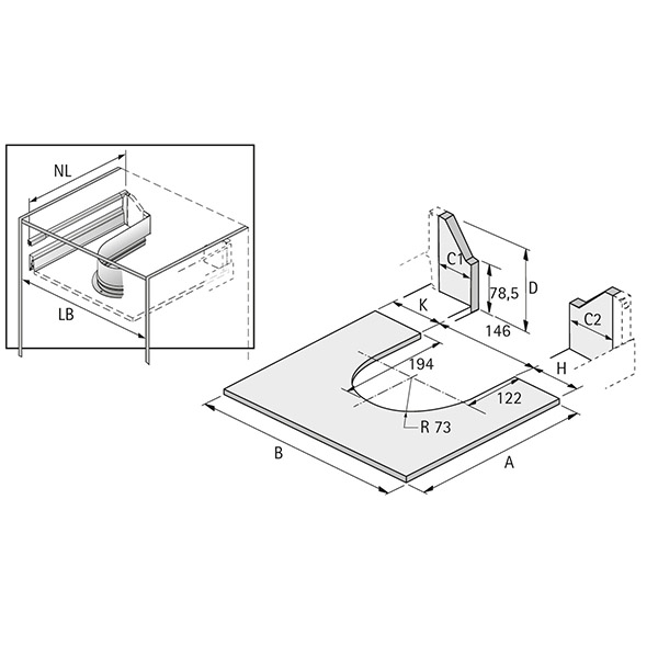 U-образная стенка для ящика InnoTech Atira под мойку, антрацит