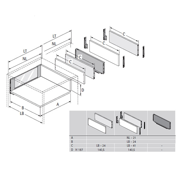 В комплект ящика Hettich Avantech You Inlay NL-500х187мм, Silent System входит: