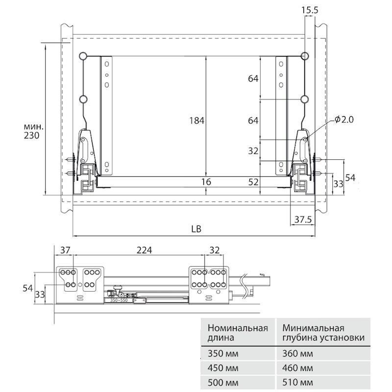 В комплект ящика Samsung IREX 450x199 мм, c доводчиком входит:
